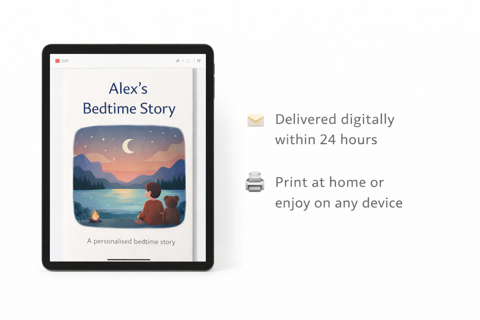 A gentle bedtime story personalised with your child’s name, created to make night-time calm, comforting, and special.